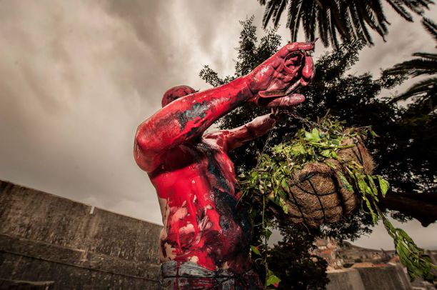 “Zaustavite nasilje” poruka je performansa “Cvijeće i ja” dubrovačkog umjetnika Božidara Jurjevića koji je izveo u petak u kasnim popodnevnim satima u parku ulice Uz Posat.