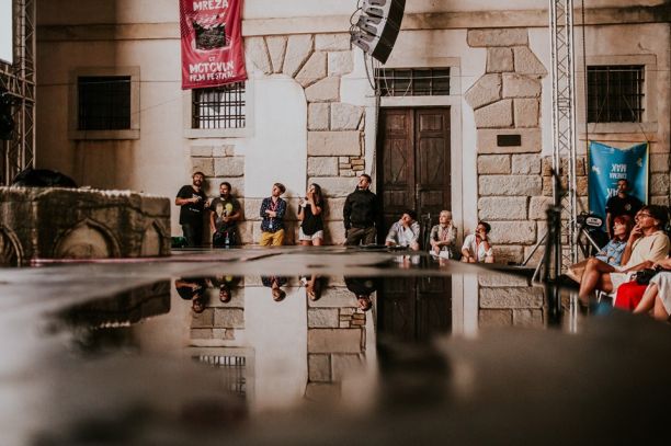 Par kapi se pretvorilo u pljusak u roku od pet minuta i publika koja je došla primarno iz Pule da pogleda film o jugoslovenskoj i puležanskoj legendi, sklonila se u prolaze ili u hotel na centralnom trgu.