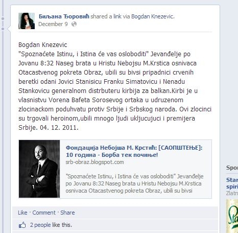 U sredu, 11. decembra, do sada nepoznata studentska organizacija Unija studenata Filozofskog fakulteta organizovala je tribinu o štetnosti GMO hrane pod nazivom "Šta nam serviraju". Na tribini je trebalo da, između ostalih, govore Miroslav Živković - "koordinator kampanje Dveri Za Srbiju, zemlju bez GMO" i novinarka Biljana Đorović, simpatizerka zabranjene fašističke grupe Otačastveni pokret Obraz.