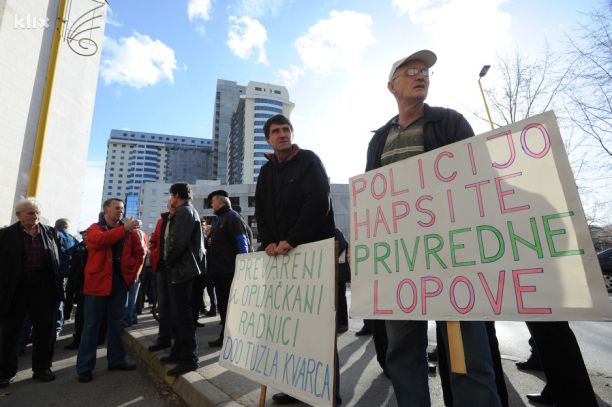 TUZLA: Radnici Dite, Konjuha, Guminga, Poliolchema i Polihema nastavili su u srijedu sa svojim mirnim okupljanima ispred zgrade pravodusnih institucija. Za razliku od ranijih okupljanja, obespravljenim radnicima su se pridružile kolege iz preduzeća Tuzlaputevi, Livnice čelika i Tuzlakvarca.