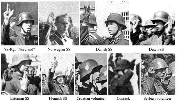 Međutim, ni ustaše nisu bili suviše originalni; ovaj simbol preuzeli su od njemačkih SS jedinica: Prisega njemačkih nacista podizanjem tri prsta