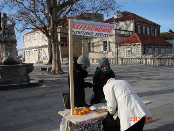 Prije godinu dana, od 1. do 15.02., na desetine volontera i volonterki je stajalo u svim dijelovima Dubrovnika i skupljalo potpise za prvi referendum u tom gradu na građansku inicijativu, kojim bi se stanovništvo izjasnilo da li je za izgradnju golf rezorta na brdu Srđ poviše Grada. Referendum je održan 28. travnja, izašlo je 11.977 građana, odnosno 31, 5 posto, od čega je preko 84 posto glasalo protiv. Međutim, zbog zakona koji propisuje izlaznost od "50 +1" registrovanog biračkog tijela, Dubrovački referendum je proglašen nevažećim.