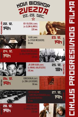 Objavljujemo repertoar Novog bioskopa Zvezda za nedelju od 22. do 28. decembra. Sem Ciklusa progresivnog filma, ove nedelje će u Zvezdi biti organizovan i prvi koncert